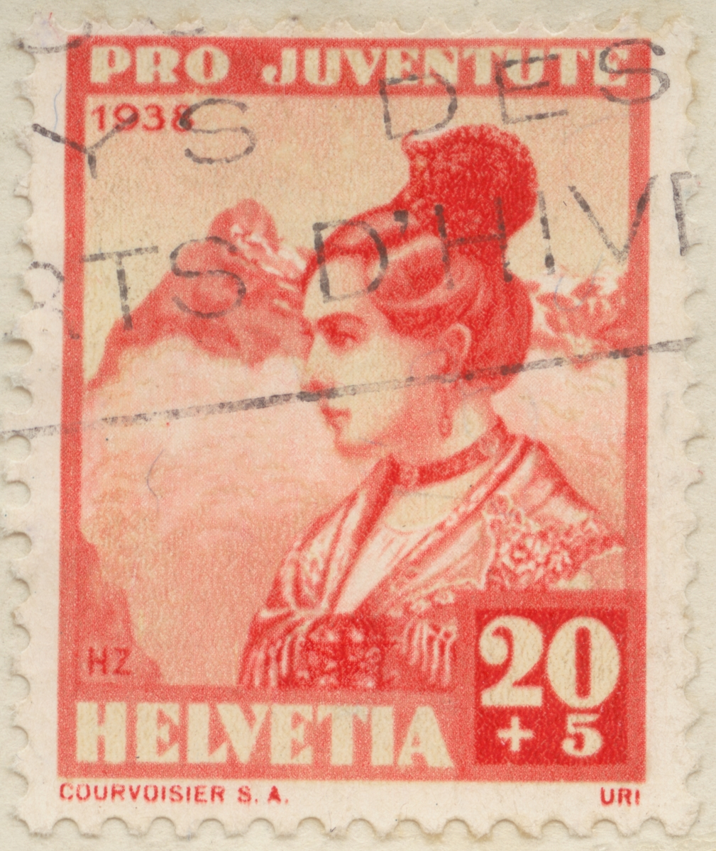 Frimärke från Schweiz, 1938. Motiv av kvinnodräkt, Uri.
