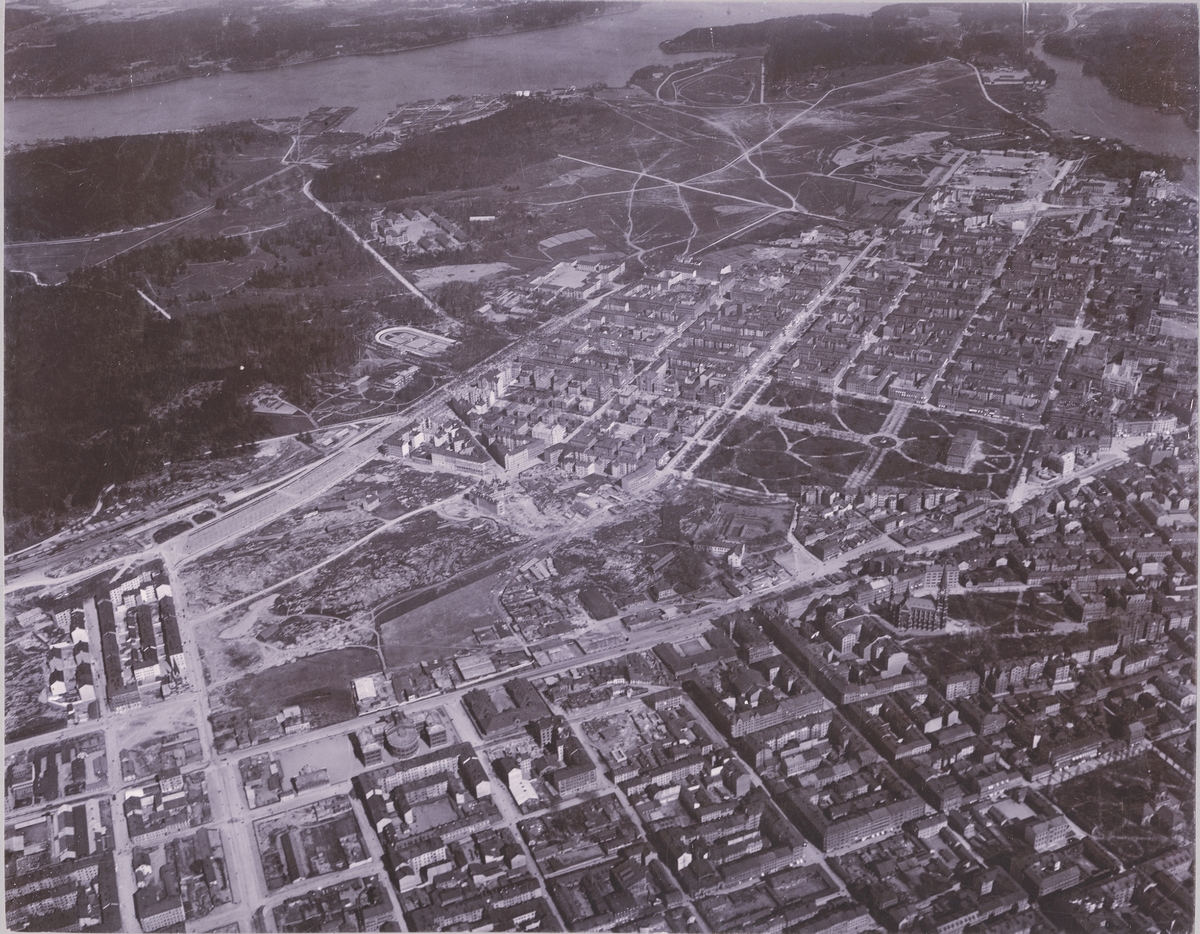 Flygfoto över Stockholm. Foto taget från luftballong, troligen 1903.