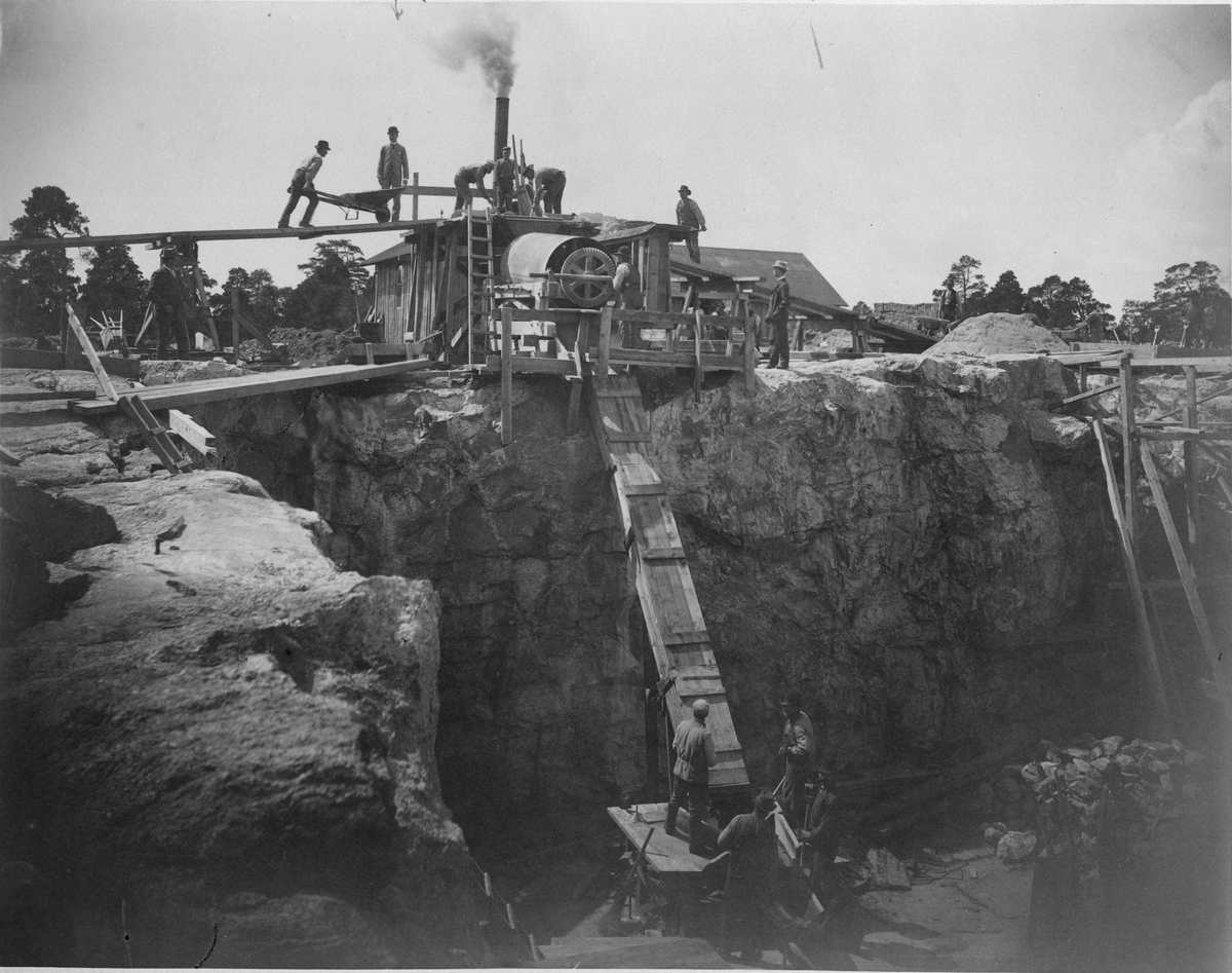 Byggandet av vattenreservoiren i Stadshagen omkring 1900.