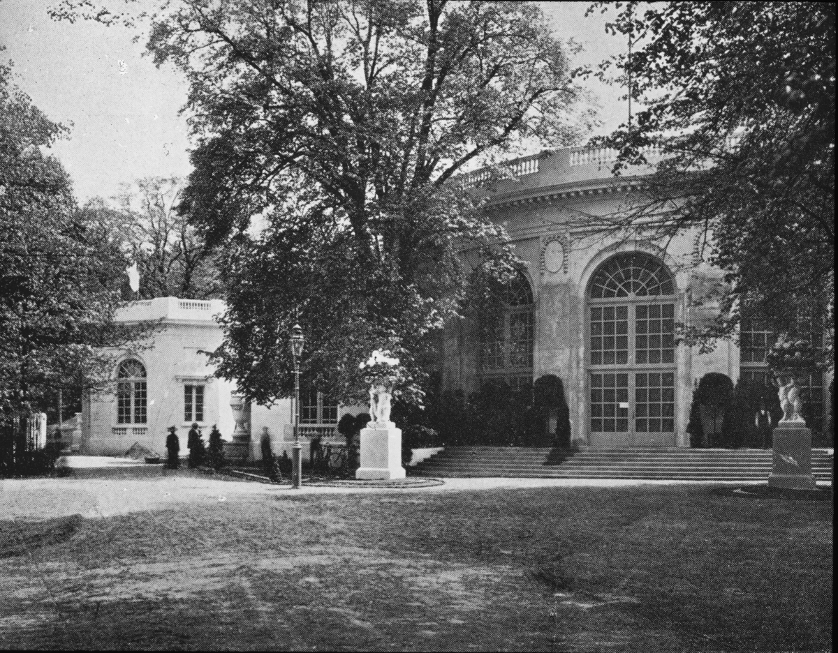 Skioptikonbild med motiv från yrkesinspektionens undersökningar på olika arbetsplatser. Okänd utställning.