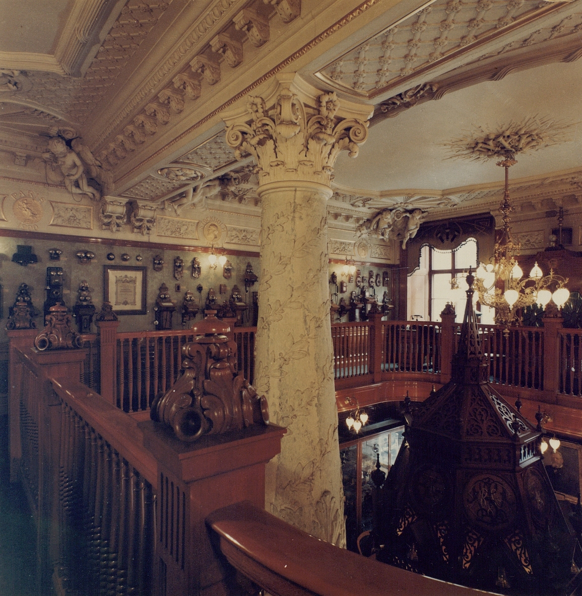 På väggarna satt en mängd telefoner, ringklockor, diplom och bilder.