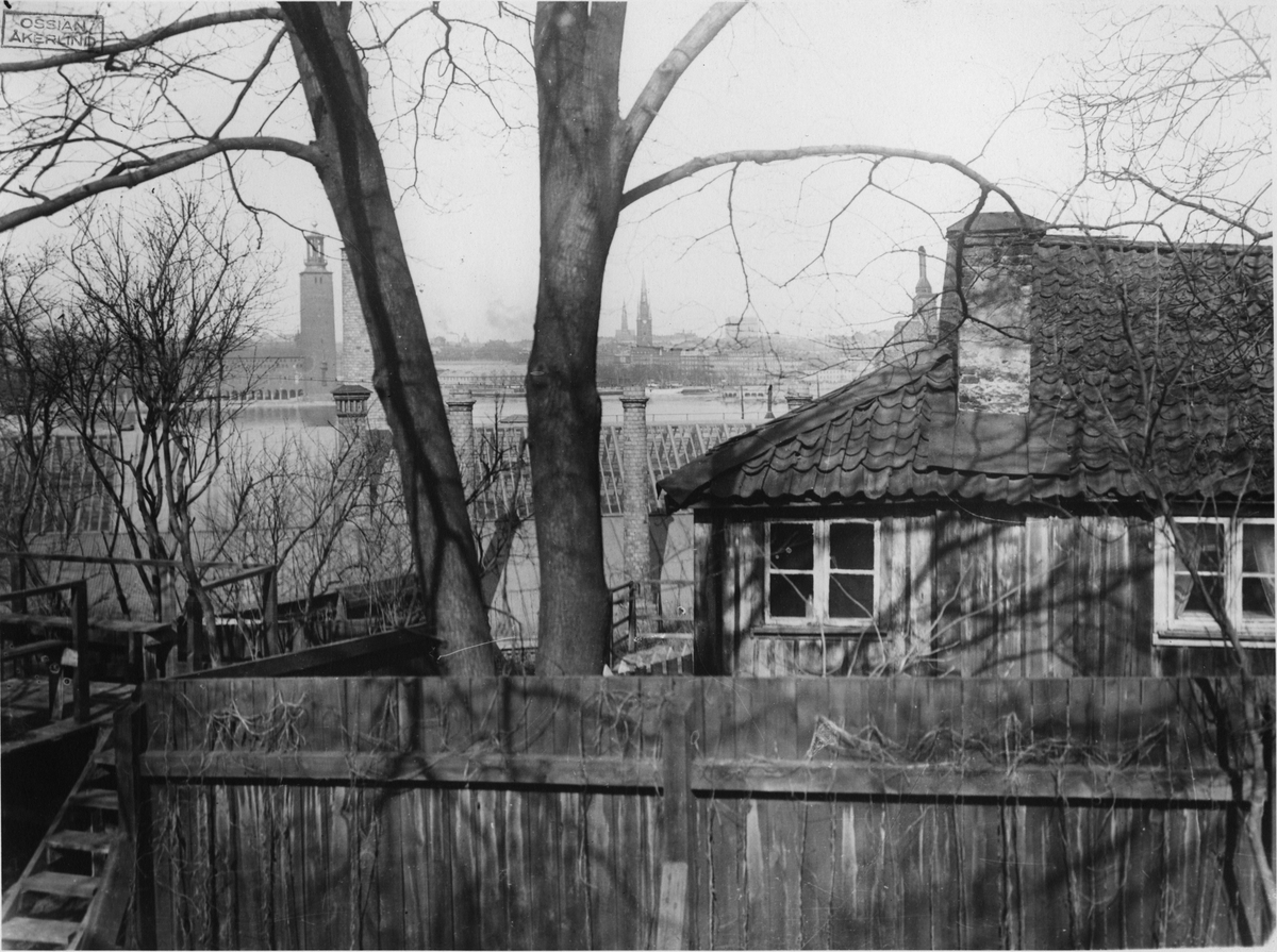 Trähus på Åsöberget med utsikt över Mälaren.
