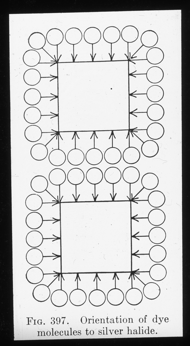 Orientering av färgämnen molekyler till silverhalogenid.