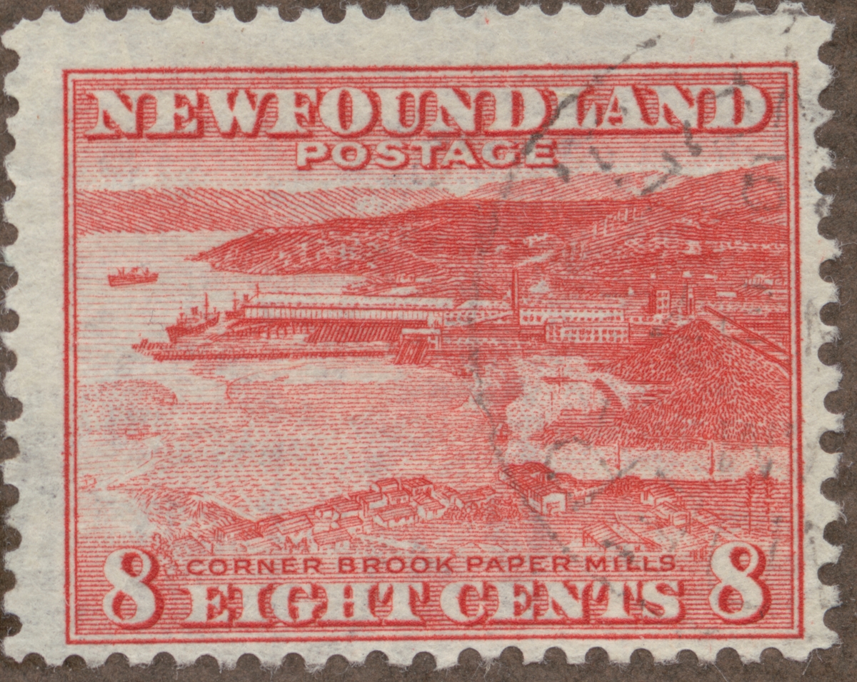 Frimärke från New Foundland (Canada), 1932. Motiv av pappersmassefabrik, Corner Brook.