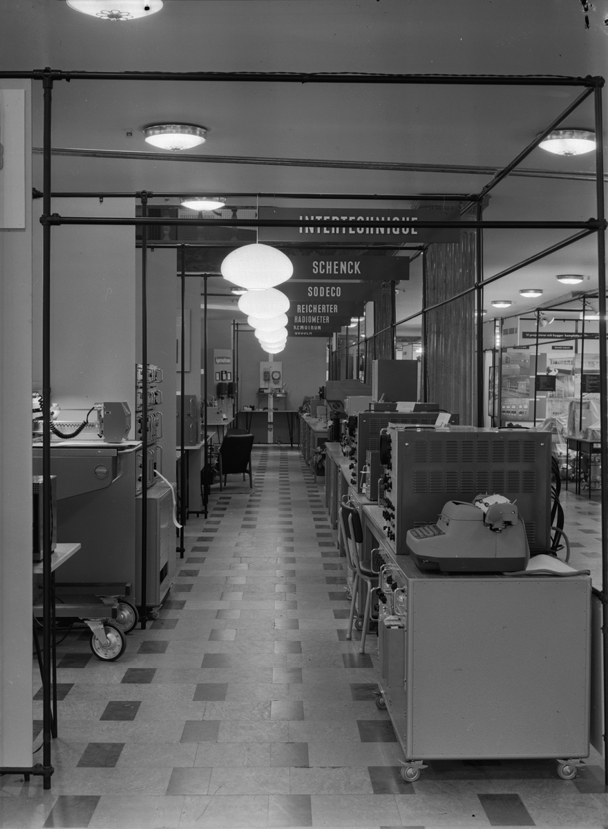 Ostermans marmorhallar. Utställning av elektronisk mätutrustning; "Intertechnique", "Schenck", "Sodeco", "Reicherter", "Radiometer".