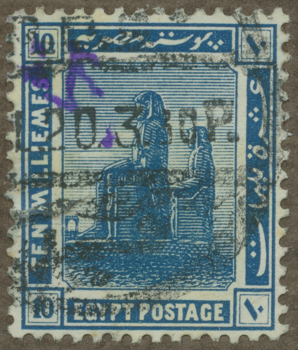 Frimärke från Egypten, 1914. Motiv av Memnonstoderna.