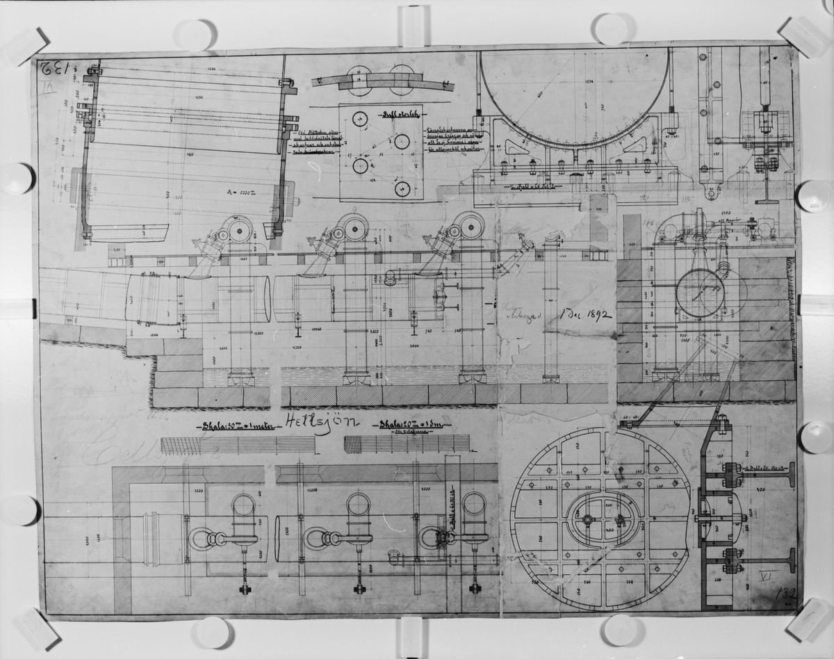 Ritning till turbinuppställning vid Hellsjö kraftstation.