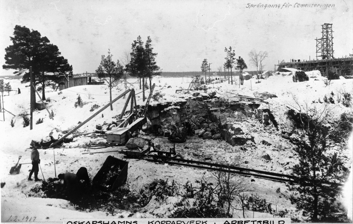 Byggherre: Bygnadaktiebolaget Contractor, Stockholm. Kopparverk. Arbetsbild. Sprängning för cementeringen.