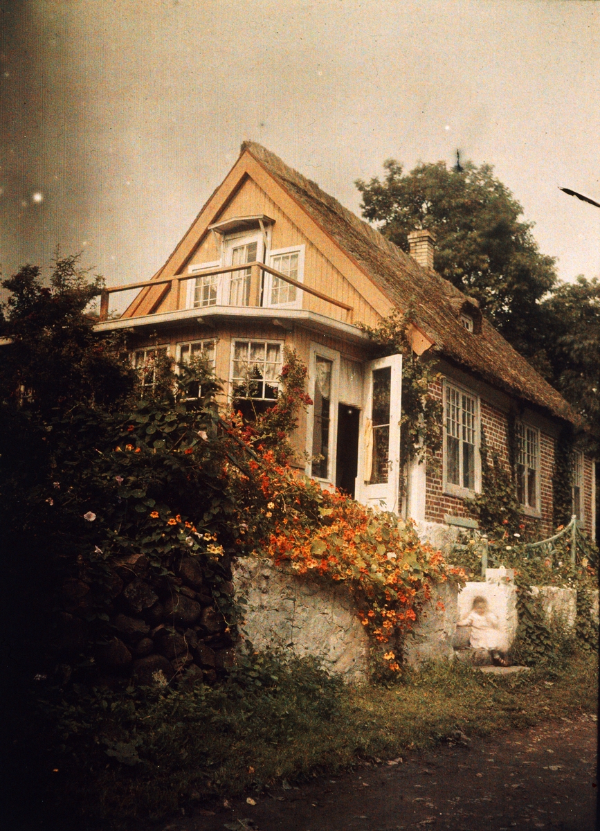 Lumières-autokrom. "Bondgård" på Kullen, Arild. Fotograferat i aug. 1912 med f/12, 12 sek. exponering.
