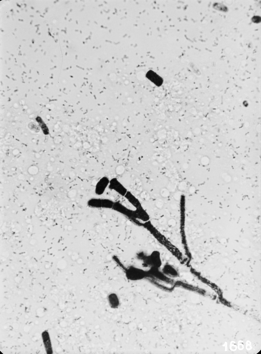 Mikrofotografering av mjölk. Mjölk förvarad 1 vecka i 20°C. Prov nr. 41.