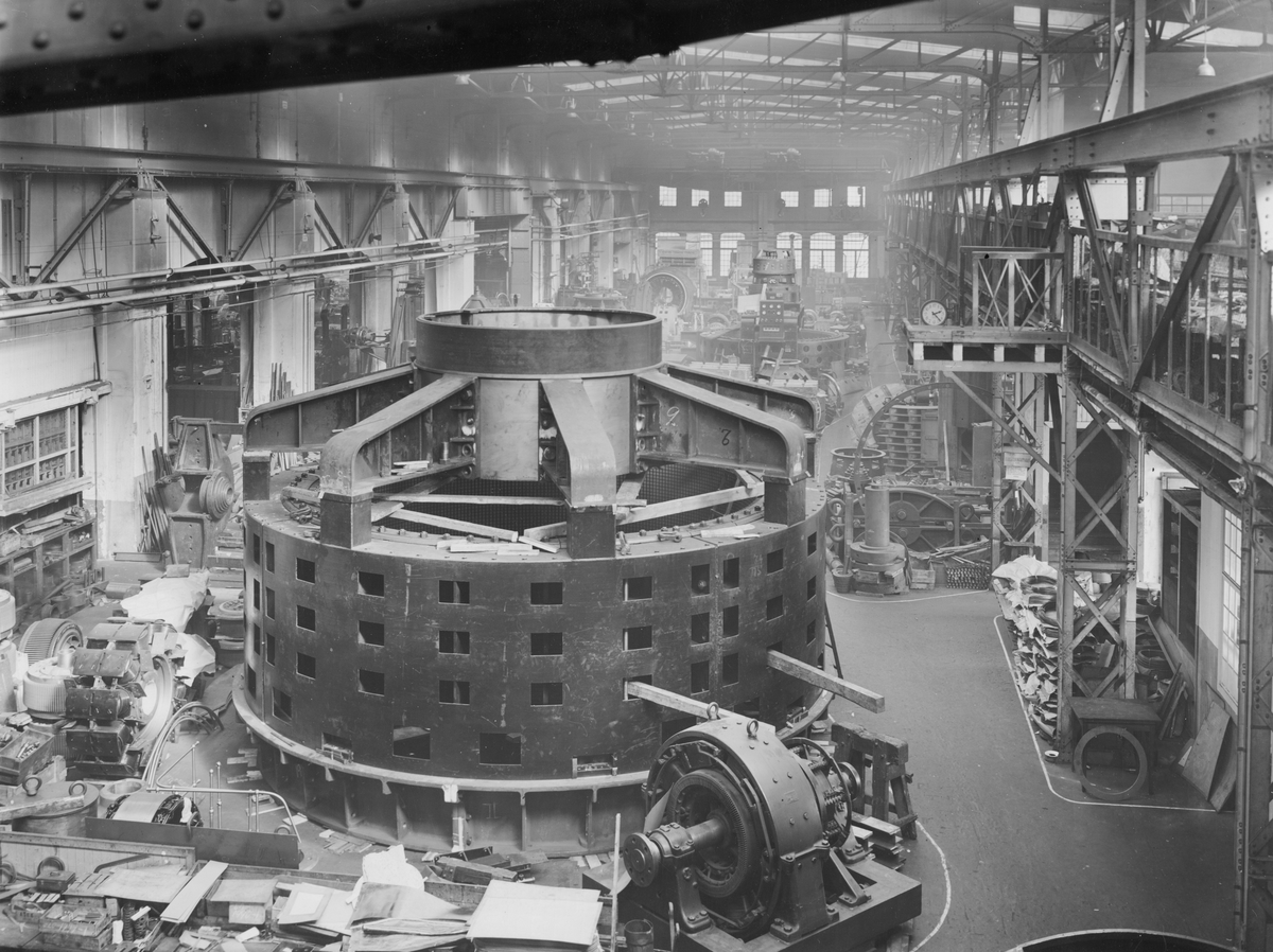 Elektriska maskiner. Emausverkstaden med hopmontering av elektriska generatorer.