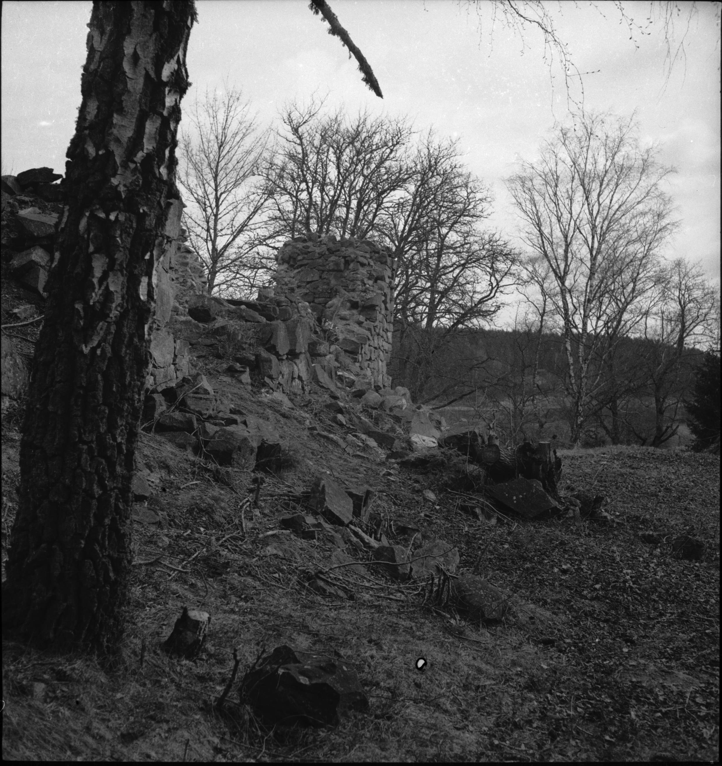 Korets och långhusets södra yttermur från väster. Före utgrävningen.
