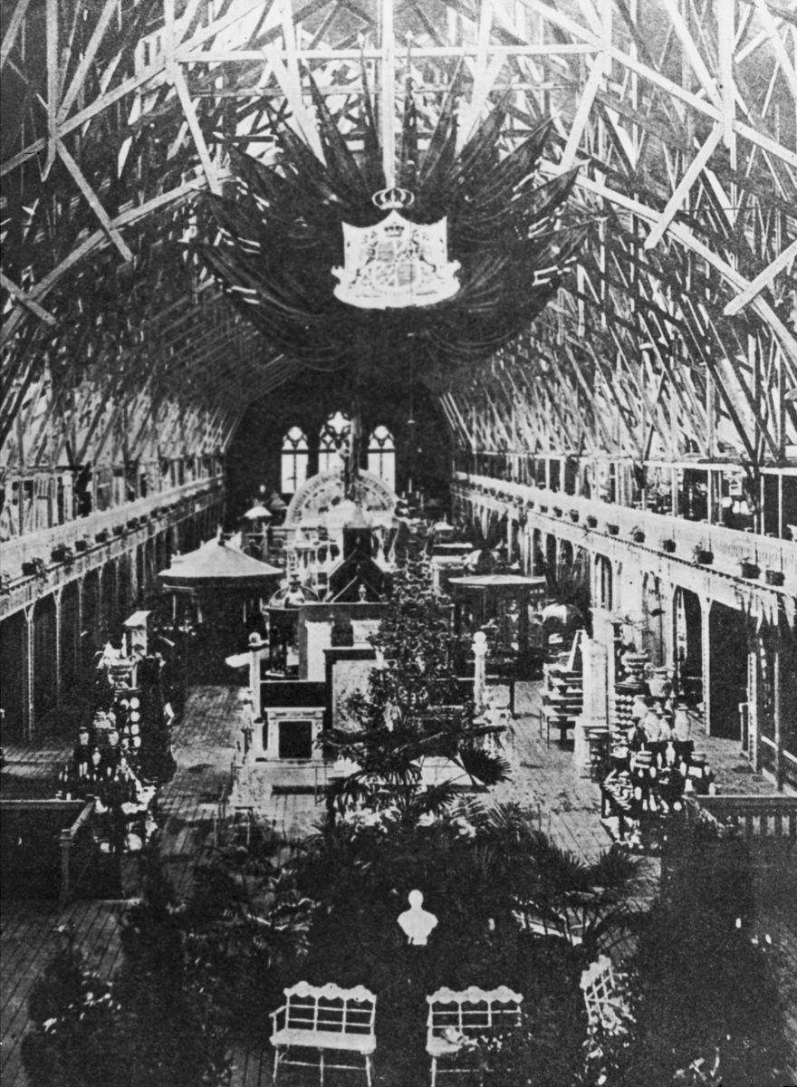 Skioptikonbild med motiv från Baltiska utställningen i Malmö 1914, konstindustri- och hantverksutställning. Maskinhallen.