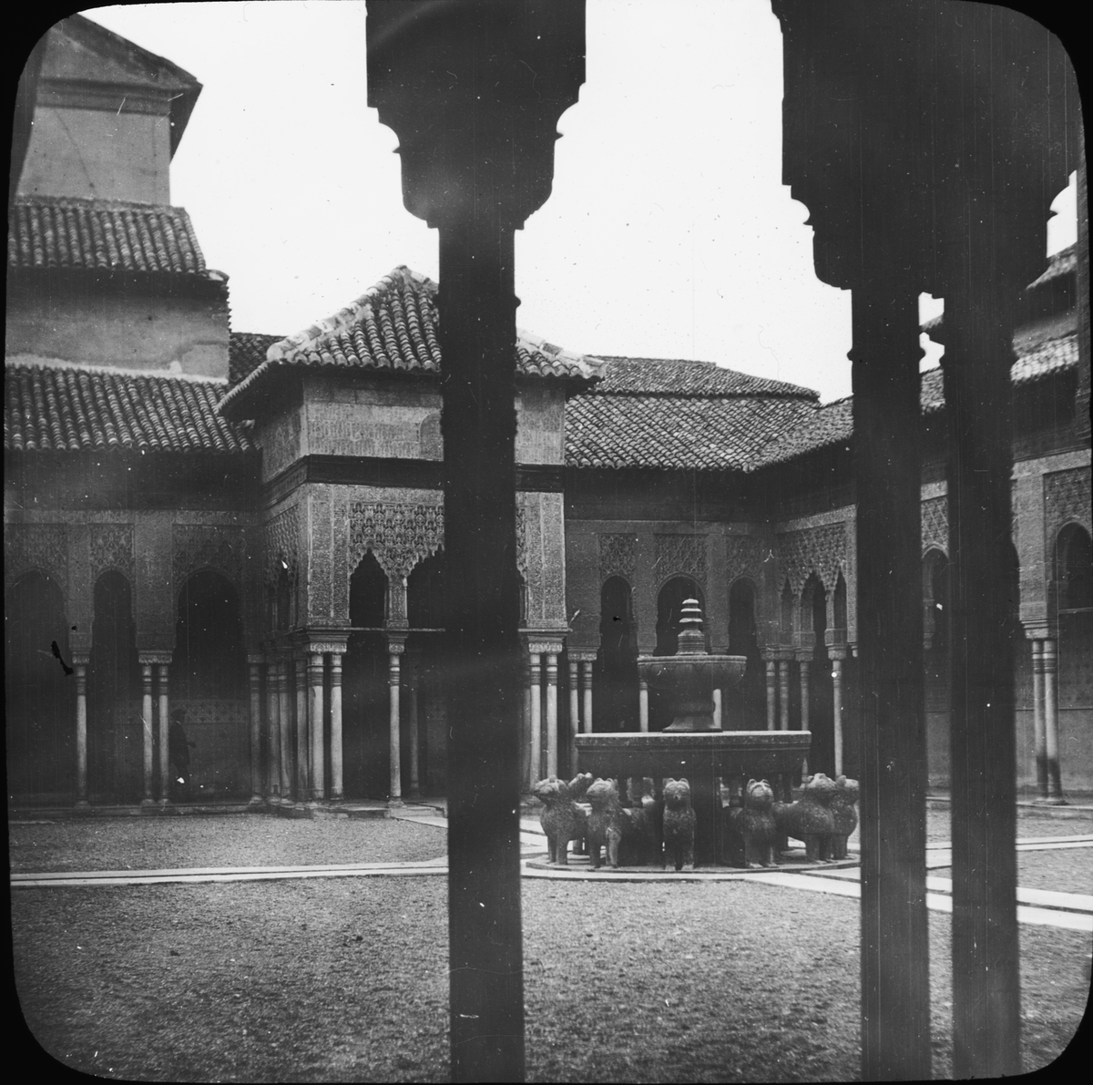 Skioptikonbild med motiv från lejongården i palatset Alhambra, Grandada.