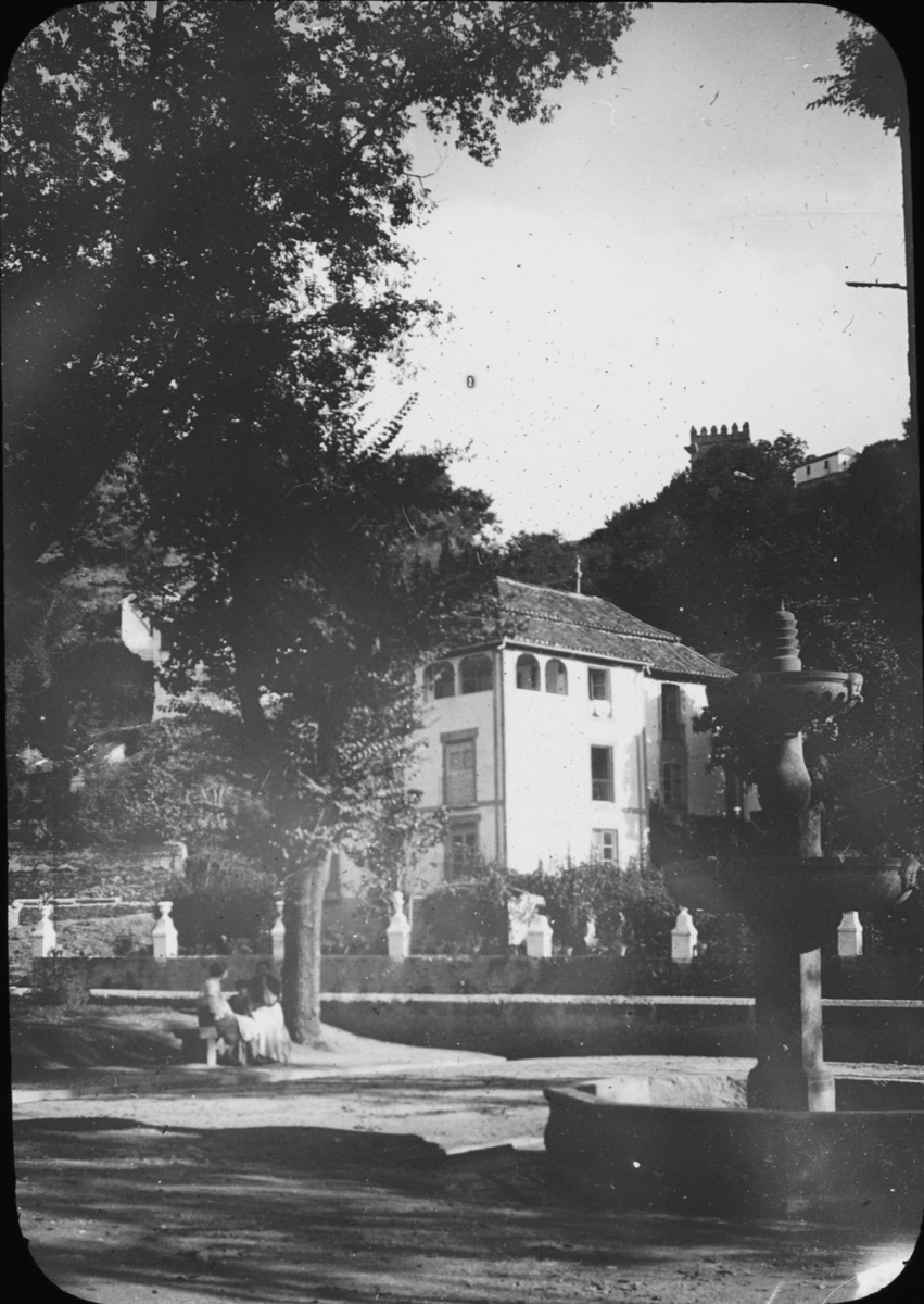 Skioptikonbild med motiv från Paseo Alamedo de Darro, Granada.