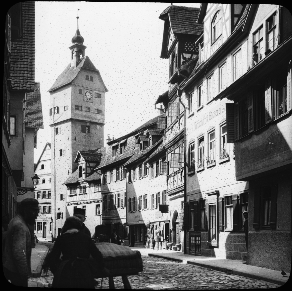 Skioptikonbild med motiv av gatan Heilbronner mot tornet Josenturm.