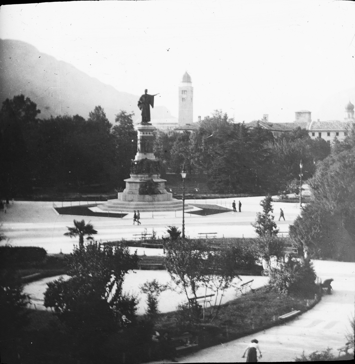 Skioptikonbild med motiv från Piazza Dante i Trient.