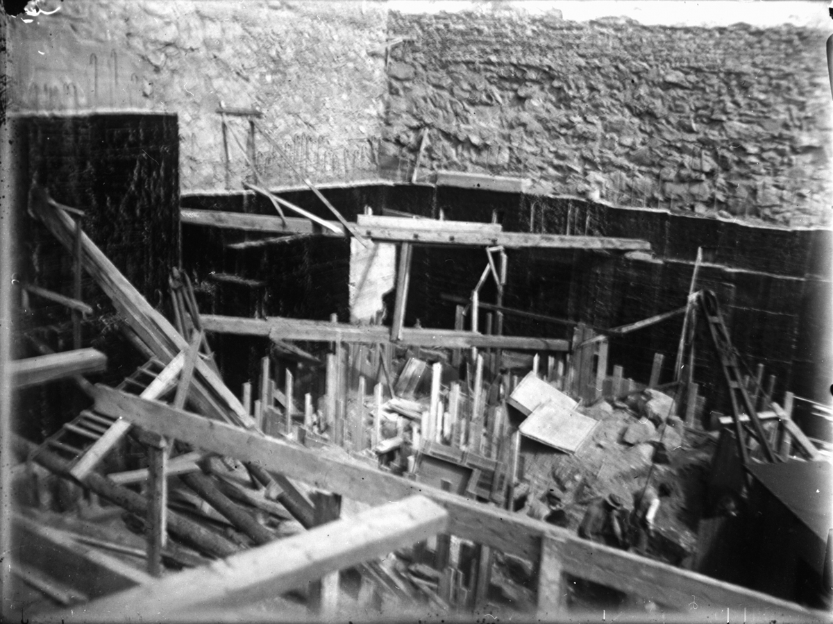 Byggherre: Byggnadsaktiebolaget Contractor. Victoria, livförsäkringsatiebolagets grund. Stöttning av muren. Kv Polacken.