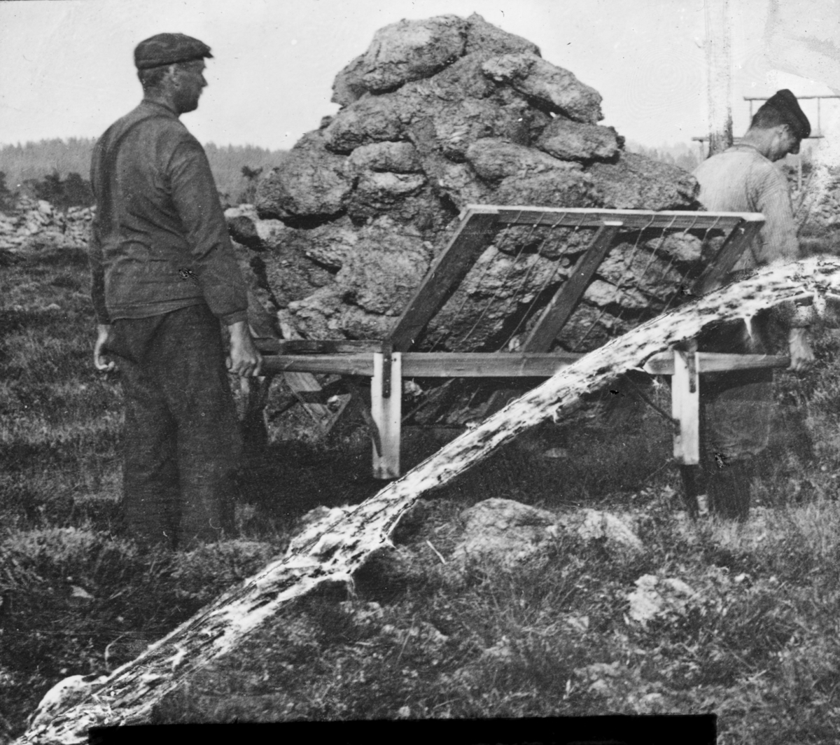 Skioptikonbild med motiv av torvbrytning på okänd mosse.