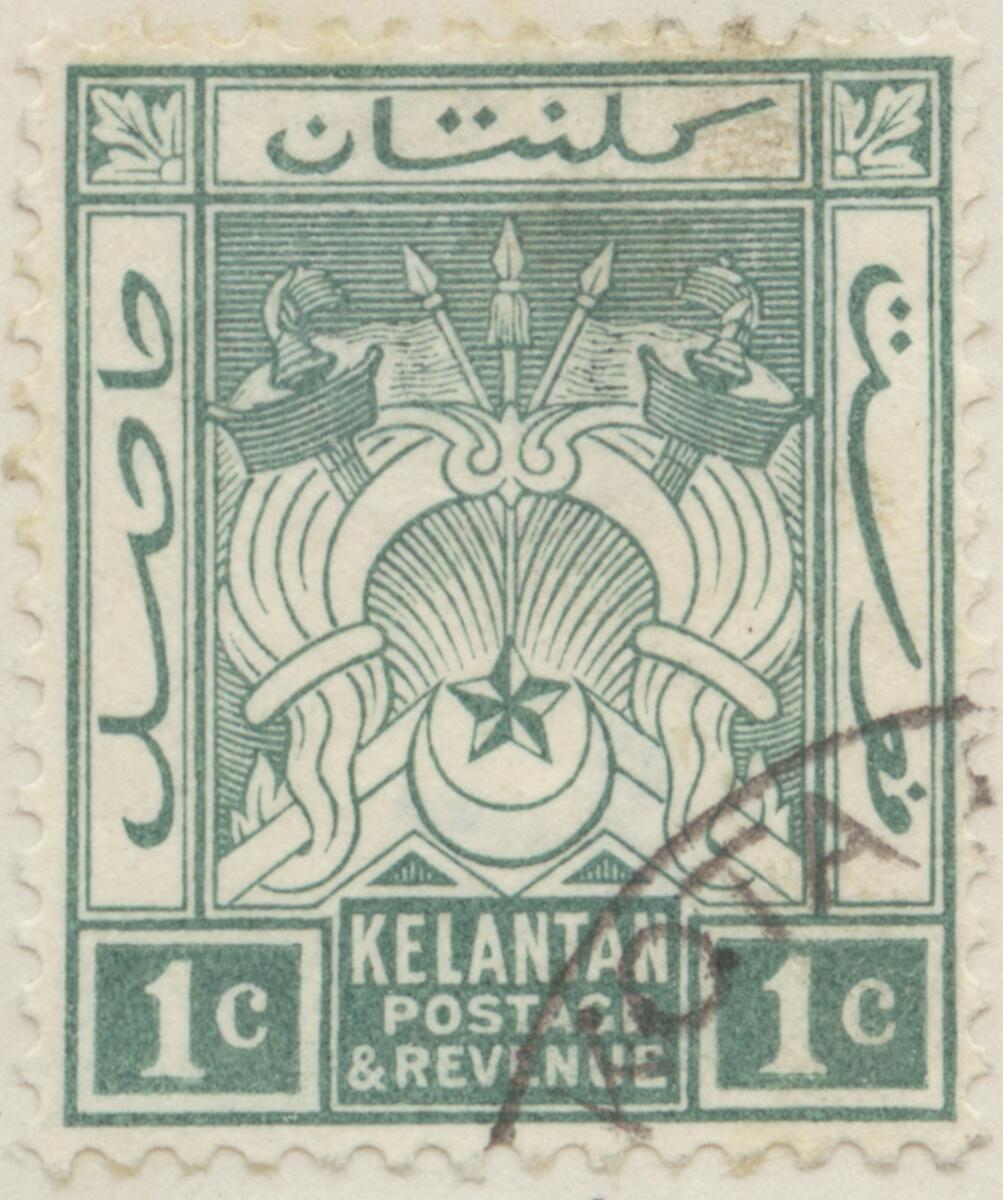 Frimärke från Kelantan, 1911. Motiv av Kelantans Vapen
