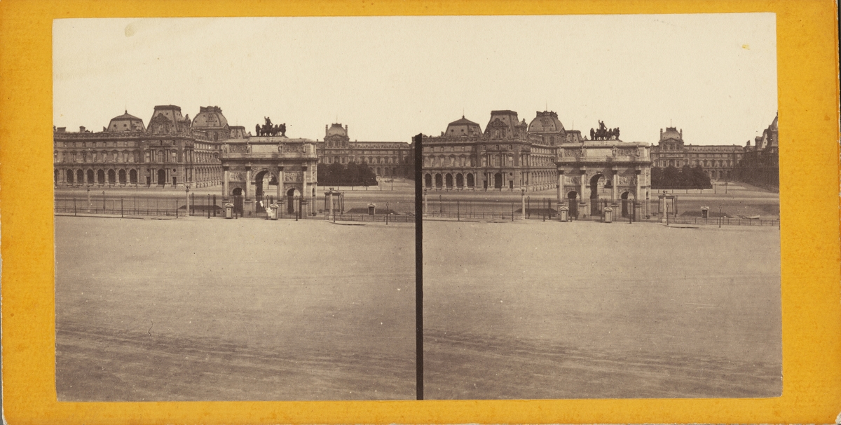 Stereobild med motiv av triumfbågen " Arc de triomphe du Carrousel" vid Louvren, Paris.