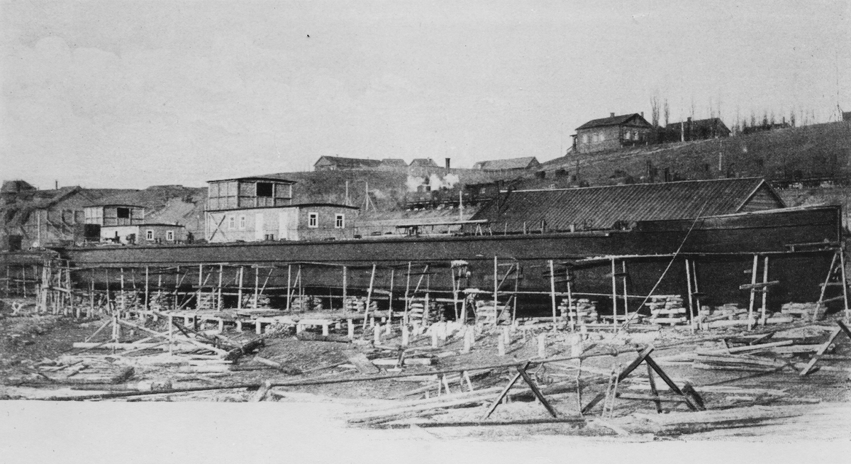Bygge av lastfartyg. Zarikzin, hos Nobels Naftaproduktionsbolag i Baku.