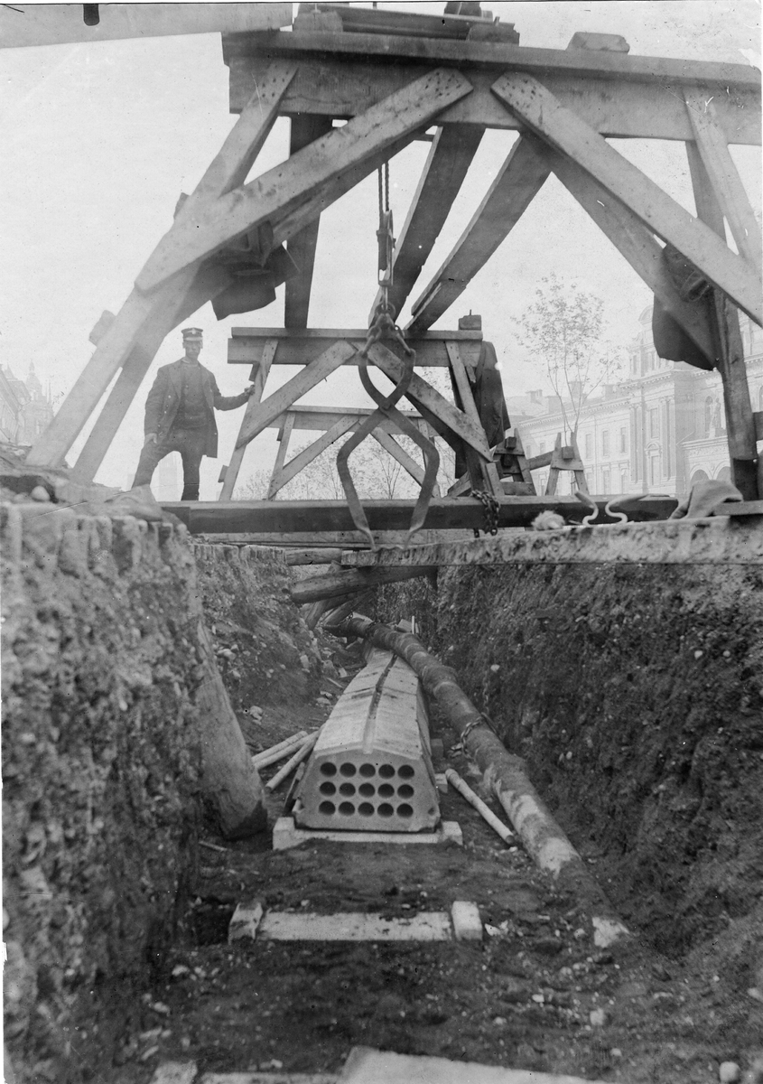 Nedläggning av underjordiska telefonledningar i Stockholm, 1891.