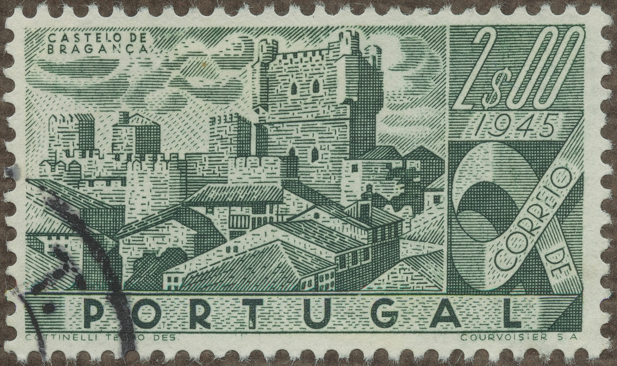 Frimärke från Portugal, 1946. Motiv av Slottet Braganza i Portugal