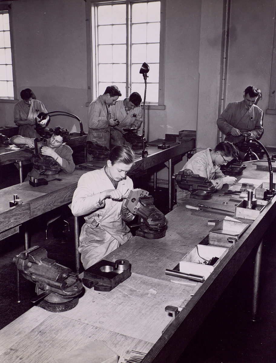 Nynäshamn. Lärlingsskolan vid televerkstaden. Tillverkning av verktyg. 1950-talet.