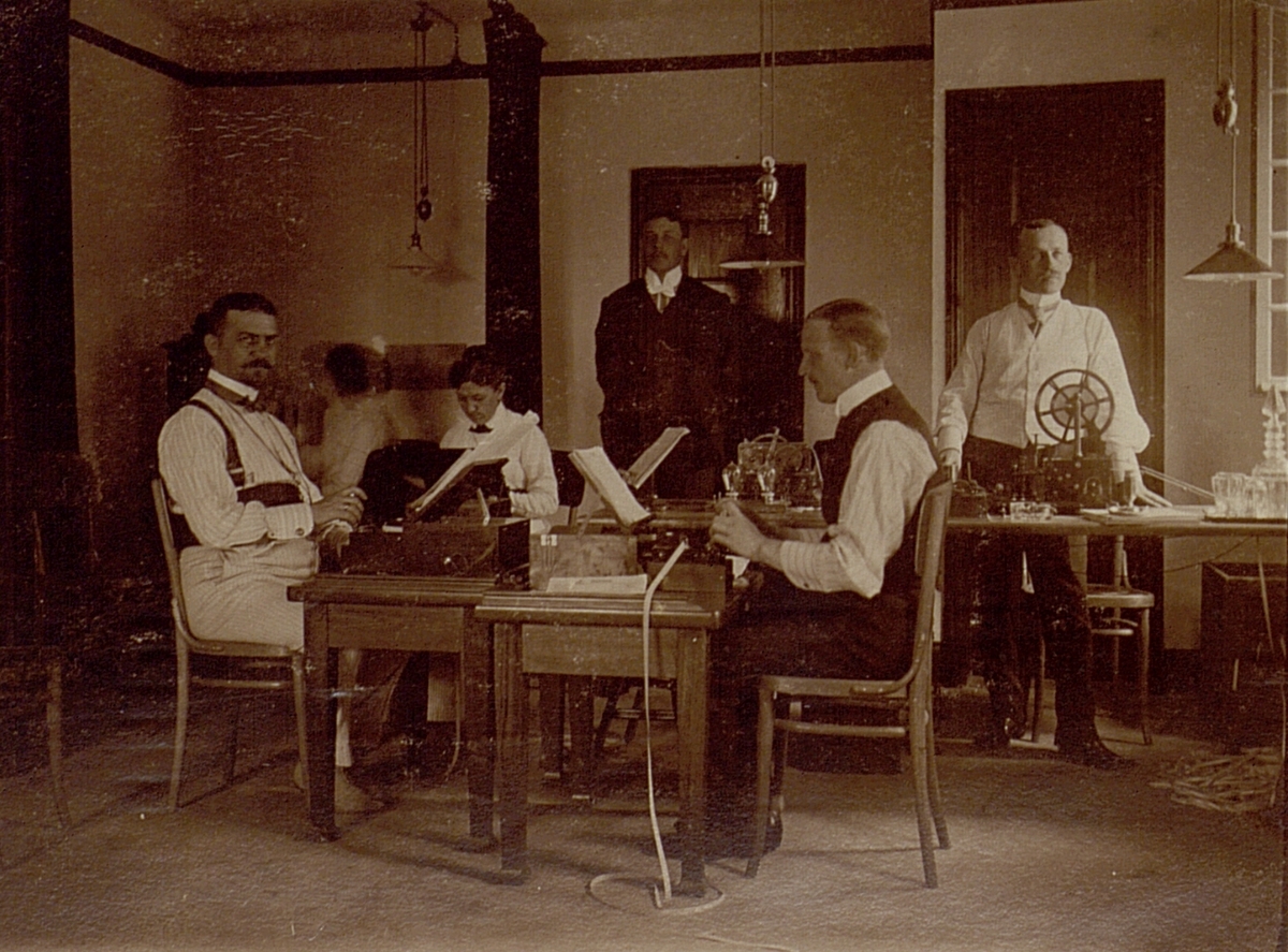 Titel: Stockholm. Stockholms telegrafstation i början av 1900-talet. Interiör.