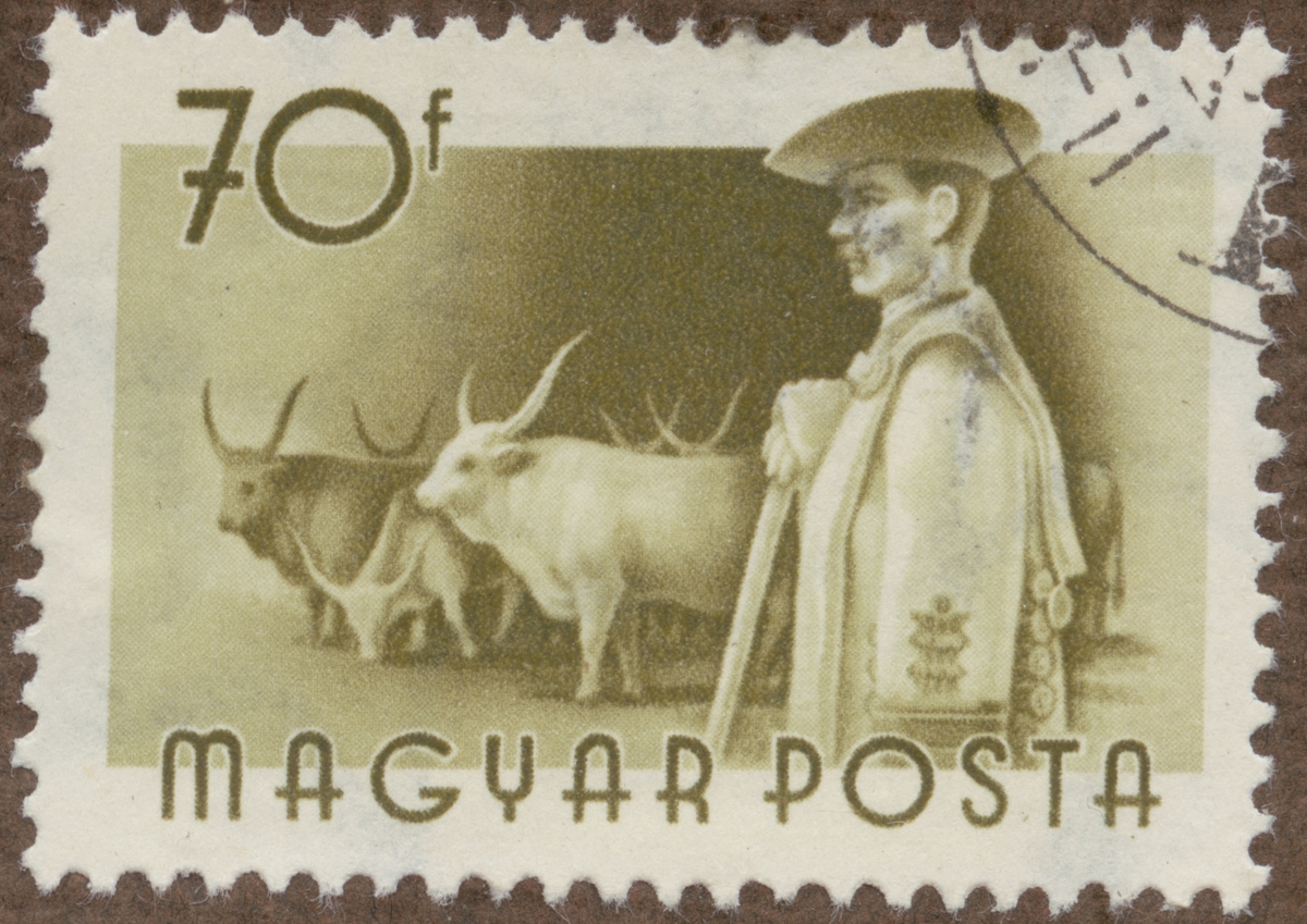 Frimärke från Ungern, 1955. Motiv av herde med nötkreatur.