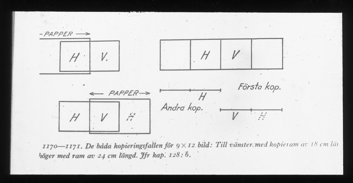 Skioptikonbild från Institutionen för fotografi vid Kungliga Tekniska Högskolan. Använd av professor Helmer Bäckström som föreläsningsmaterial. Bäckström var Sveriges första professor i fotografi vid Kungliga Tekniska Högskolan i Stockholm 1948-1958.