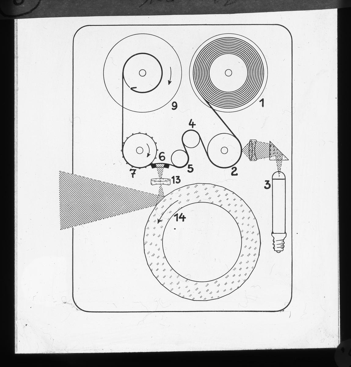 Skioptikonbild från Institutionen för fotografi vid Kungliga Tekniska Högskolan. Använd av professor Helmer Bäckström som föreläsningsmaterial. Bäckström var Sveriges första professor i fotografi vid Kungliga Tekniska Högskolan i Stockholm 1948-1958.