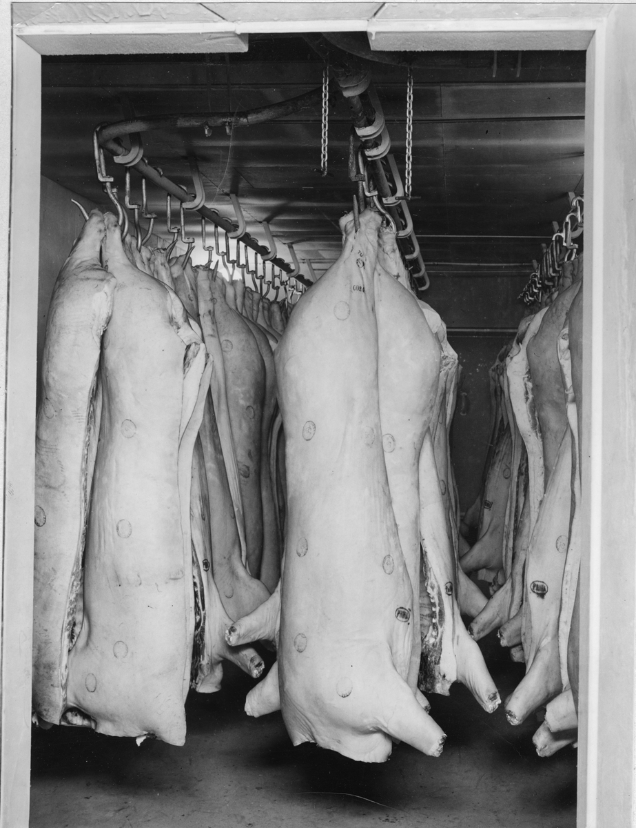 Frysbox som rymmer ca 6 ton fläsk. Efter en frystid av 12-15 timmar tas fläsket ut och är färdigt för stapling i fryslagerutrymme.