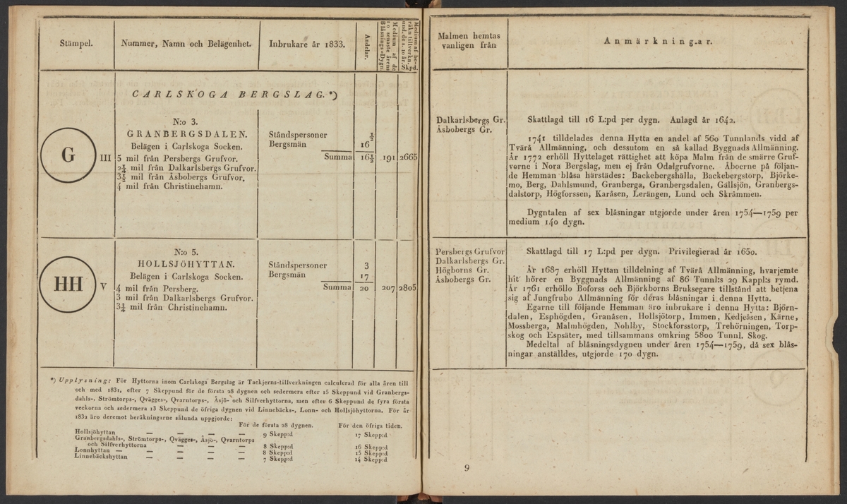 Stämpelbok över hytterna inom Värmlands bergmästaredöme, upprättad år 1833.