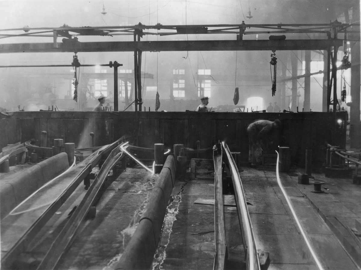 Sandvikens Järnverk (Sandvikens Jernverk). Trådvalsning. Huvuddelen av denna tillverkning går till brukets eget tråddrageri för vidare förädling till kalldragen eller kallvalsad tråd. Dylik tråd säljes i stor utsträckning även härdad och finpolerad för särskilt krävande ändamål, till exempel för urfjärdrar.