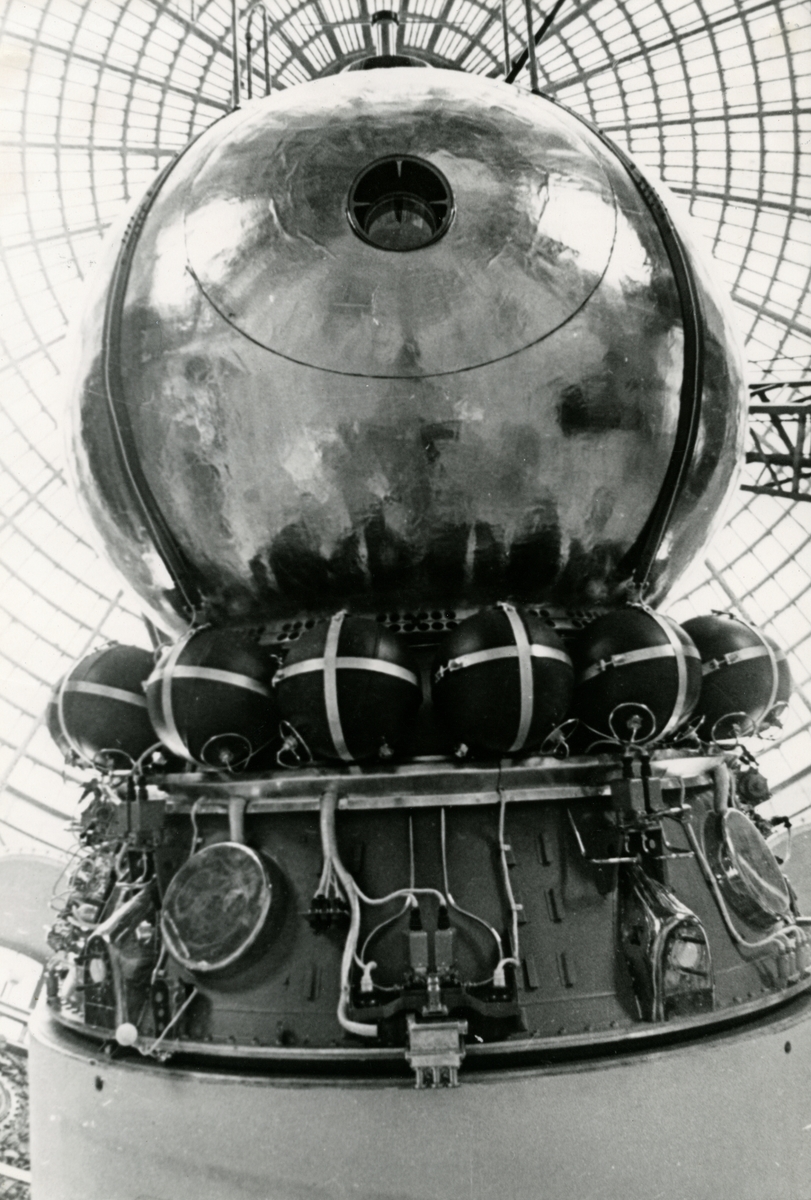 Huvudet av rymdfarkosten "Vostok" på utställingen "Folkekonomiens presentationer i SSSR" i Moskva.