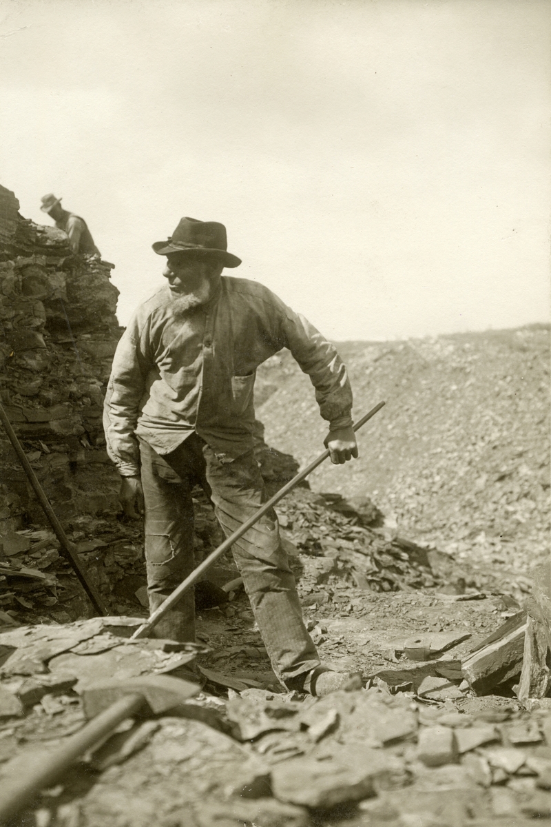 Stenhuggare vid kalkbrottet i Degerhamn, 1906. Områderna kring södra varven för Ölands Cementfabrik.