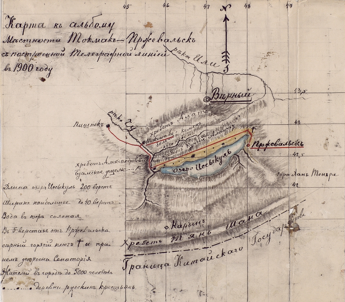 Skiss från anläggningen av en telegraflinje i Ryssland år 1900.