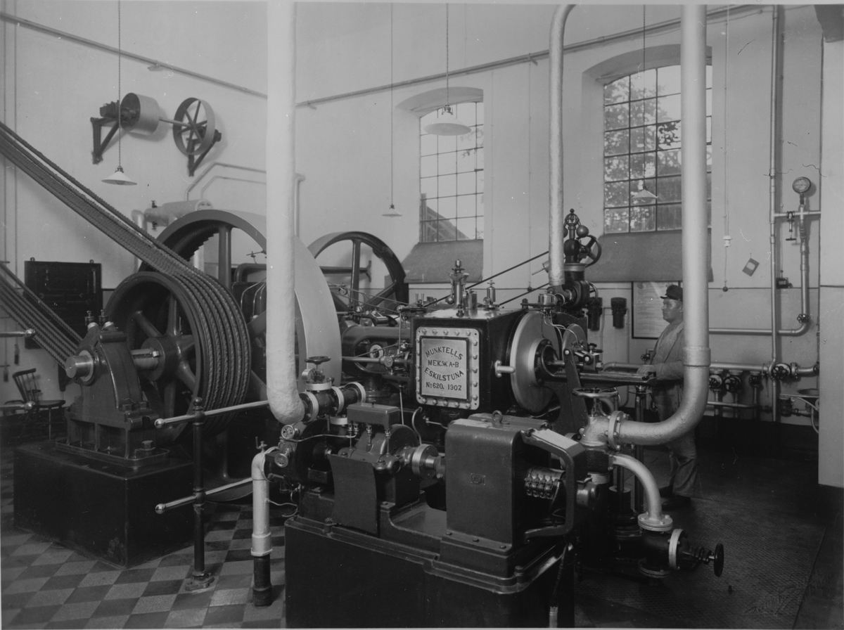 Maskinrummet vid Arboga Margarinfabrik. (Bilden ingår i ett fotoalbum med rubriken - Aktiebolaget Arboga margarinfabrik).