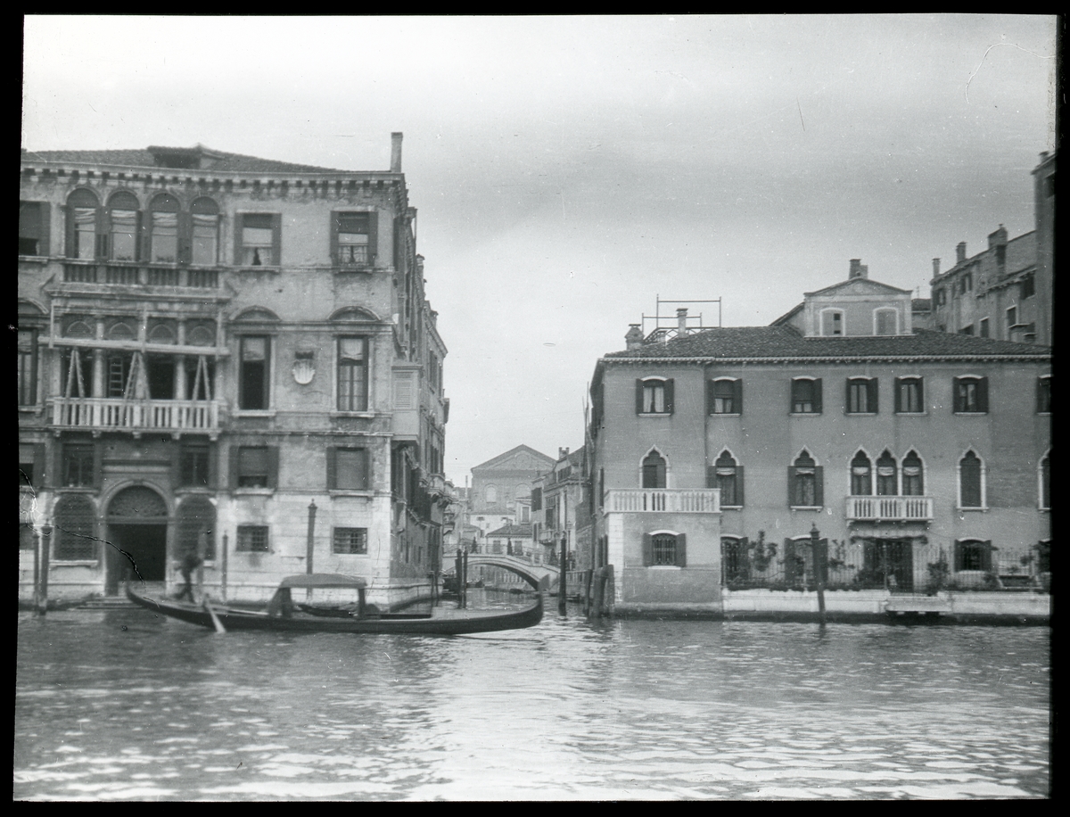 Skioptikonbild från institutionen för fotografi vid Kungliga Tekniska Högskolan. Motiv från Venedig. Bilden är troligen tagen av John Hertzberg under en resa i Europa.