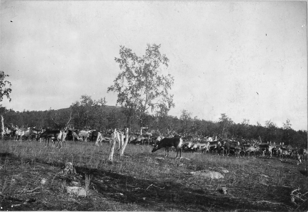 Sjangeli koppargruvor i Lappland. Renar på bete.