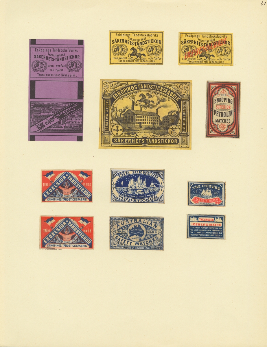 (Enköpings Tändsticksfabrik, The Iceberg, Australian Safety Matches, Excelisor Tändstickor).