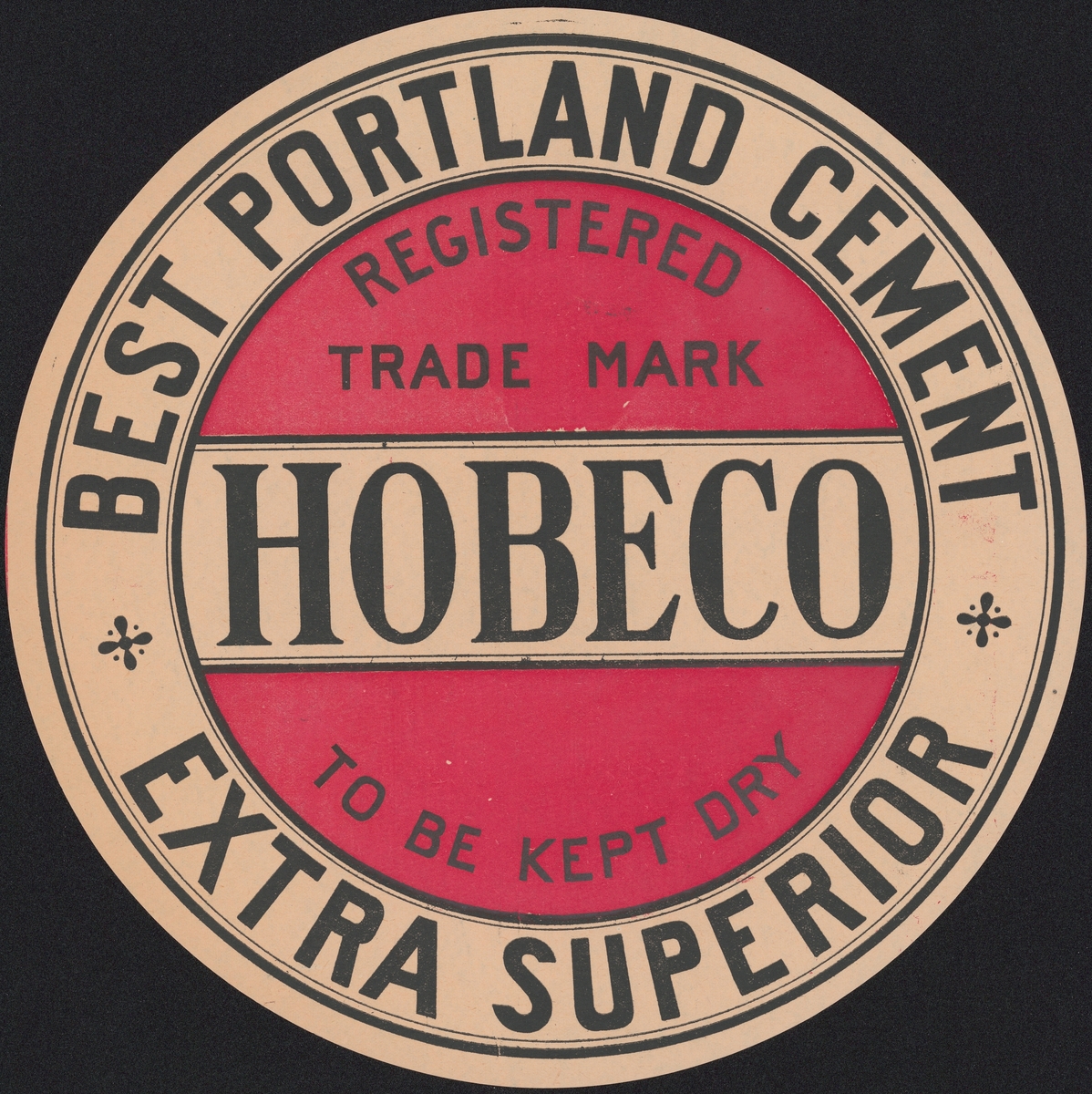 Fabriksmärke för cementpåsar. Hobeco. Best Portland Cement.