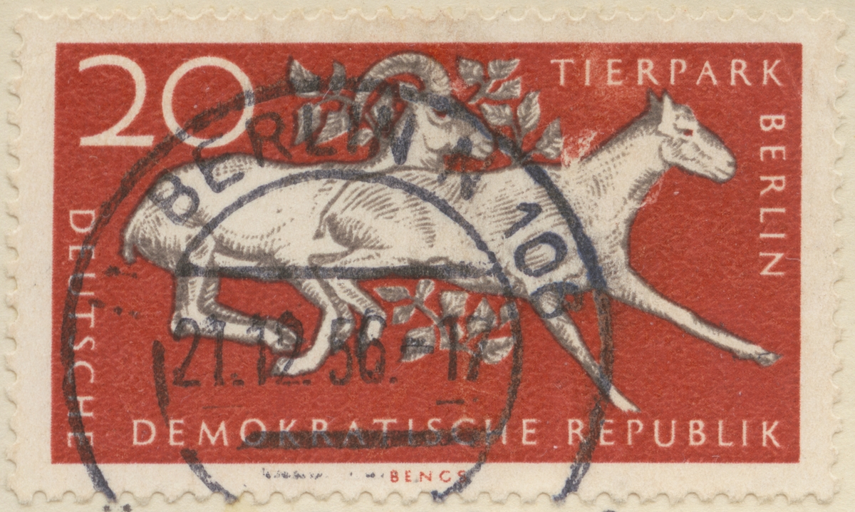Frimärke från Öst Tyskland, 1956. Motiv av Från Berlins Djurpark -Propaganda märke-