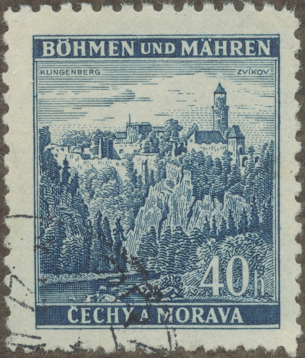Frimärke från Böhmen Mähren, 1939. Motiv av Slottet i Klingenberg