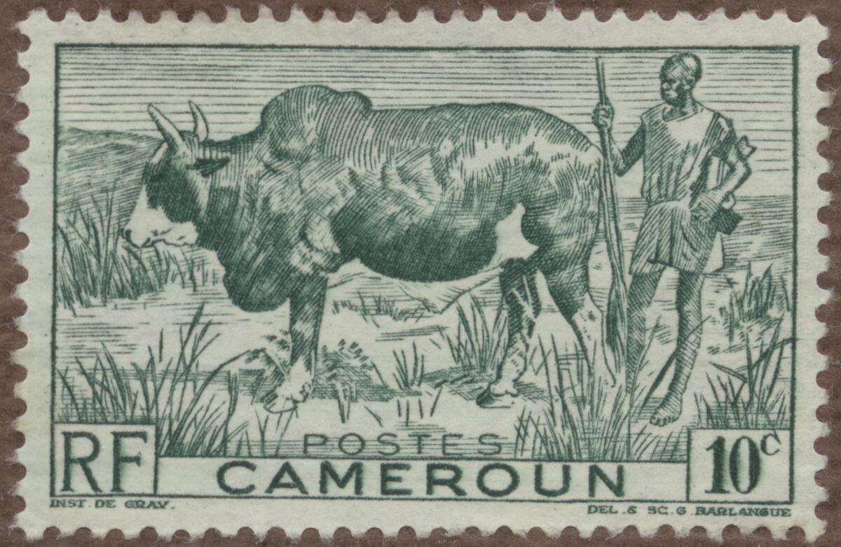 Frimärke från Kamerun, 1946. Motiv av Tjur av Zeburas i Kamerun