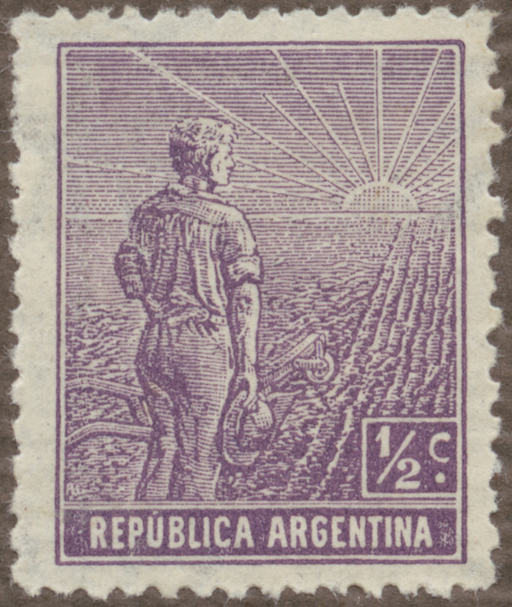 Frimärke från Argentina, 1911. Motiv av Argentinsk jordbrukare Plöjningsarbete
