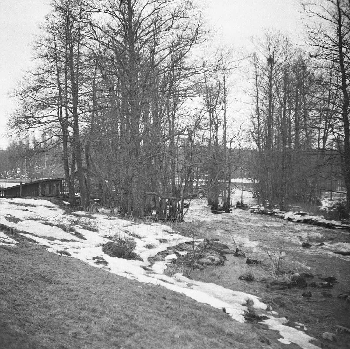 Nyköpings elektricitetsverk. Landskapsvy med fors.