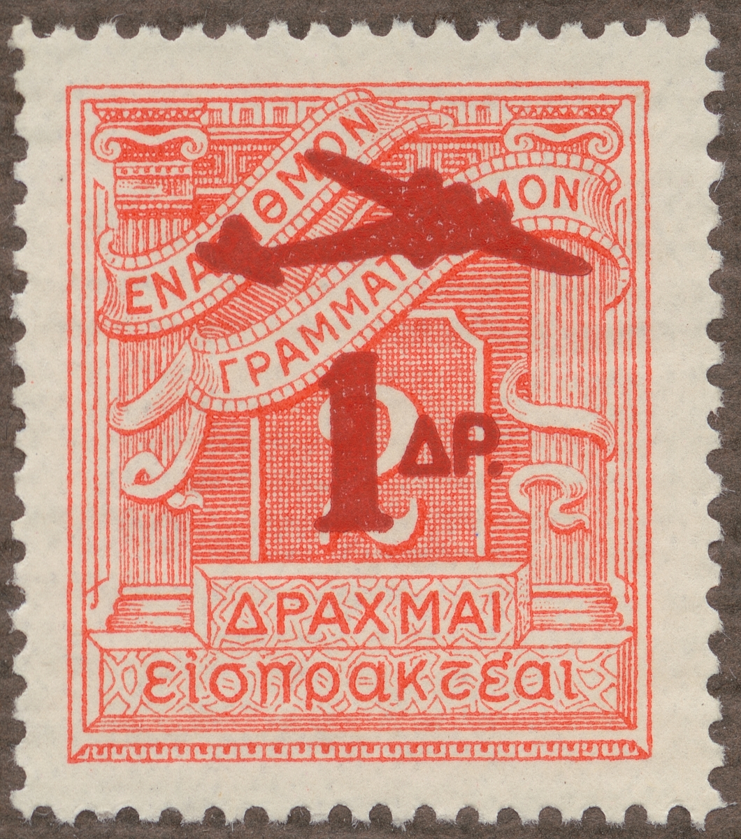 Frimärke från Grekland, 1941. Motiv av Monoplan "-Rött Övertryck: 1941-"